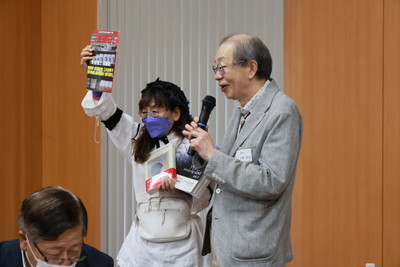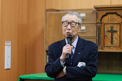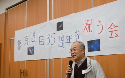 最も長い友人の寺島一男さんのスピーチは温かい。和やかな雰囲気に包まれる