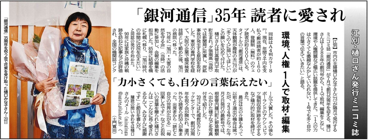5月31日北海道新聞朝刊(江別版)に記事が掲載されました。画面をクリック。